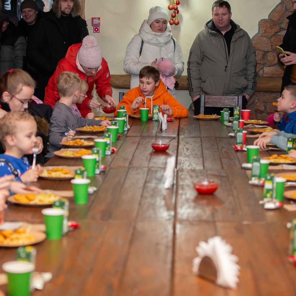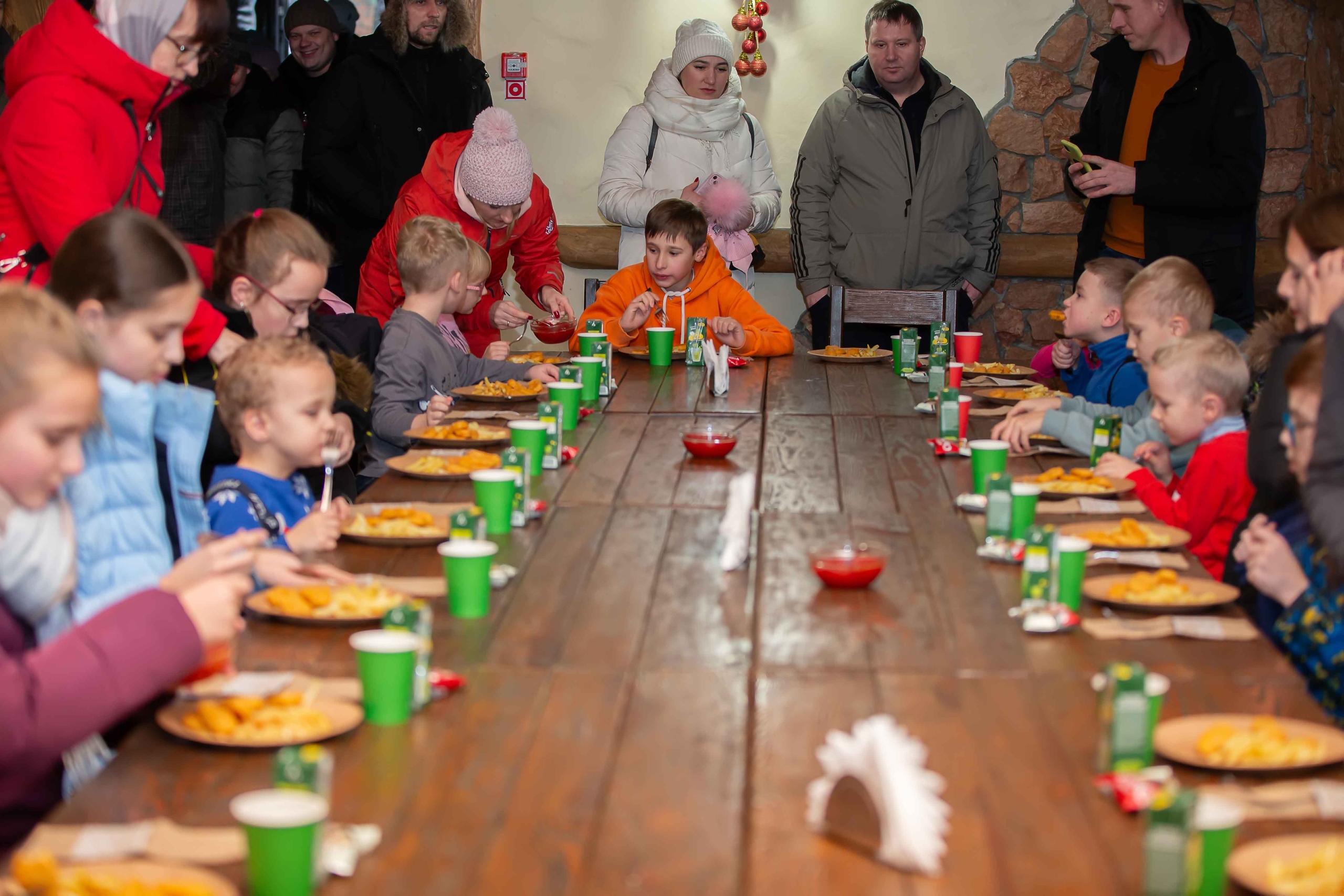 В первую очередь, конечно, на детей от 3 до 10 лет, но и взрослые компании совершенно бесплатно могут поучаствовать в программе вместе с детьми, а могут во время представления отдохнуть в полноценном ресторане, не волнуясь за своих чад, ведь мы относимся ко всем детям, как к своим. Уже более 10000 детей встретили Новый год в нашей деревне.